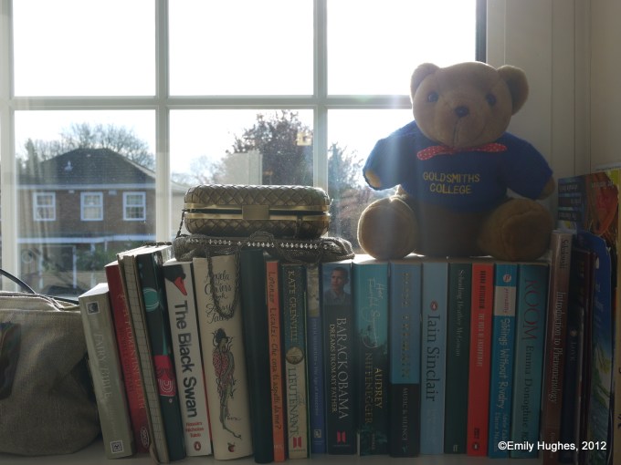 There are two windowsills near my side of the bed. I tend to use them as temporary bookshelves/dumping grounds for various bits and pieces I haven’t found the time or energy to create a home for. I will say upfront feel I am exposing myself a little here, as quite a messy (and possibly also schizophrenic) person. I do like things to be clean, but my mess doesn’t really bother me (anyone else’s is another matter, of course). As long as I know where everything is (which actually isn’t always the case – I am always losing things) then I am happy.