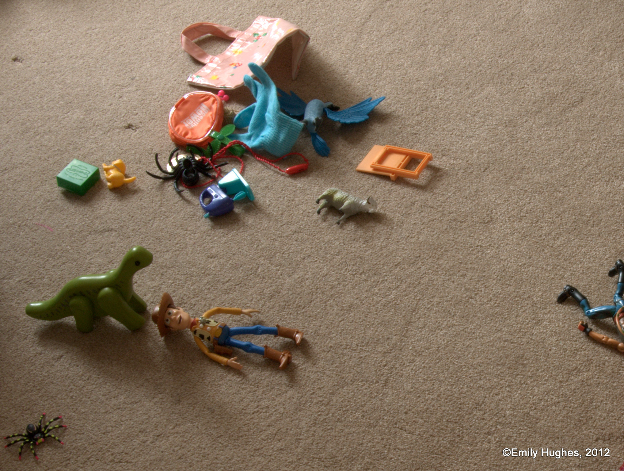 It’s been a grey, rainy week, which has forced us to spend more time than is healthy indoors. Consequently, our house is sort of starting to resemble a toy shop after a whirlwind has whipped through it, sucked up its entire contents and spewed them all out again. There are toys, and small tiny child things everywhere. I thought, well, if you can’t beat ’em… and so decided to start photographing the mess.