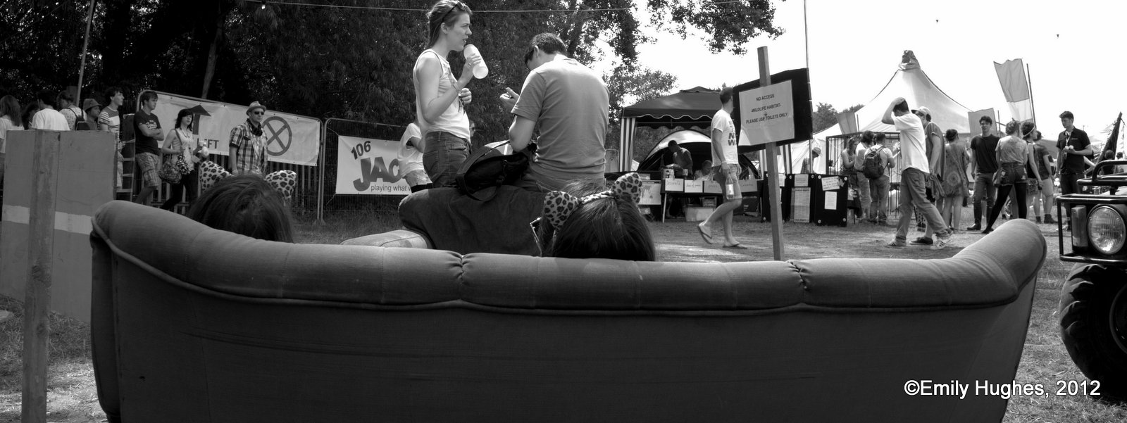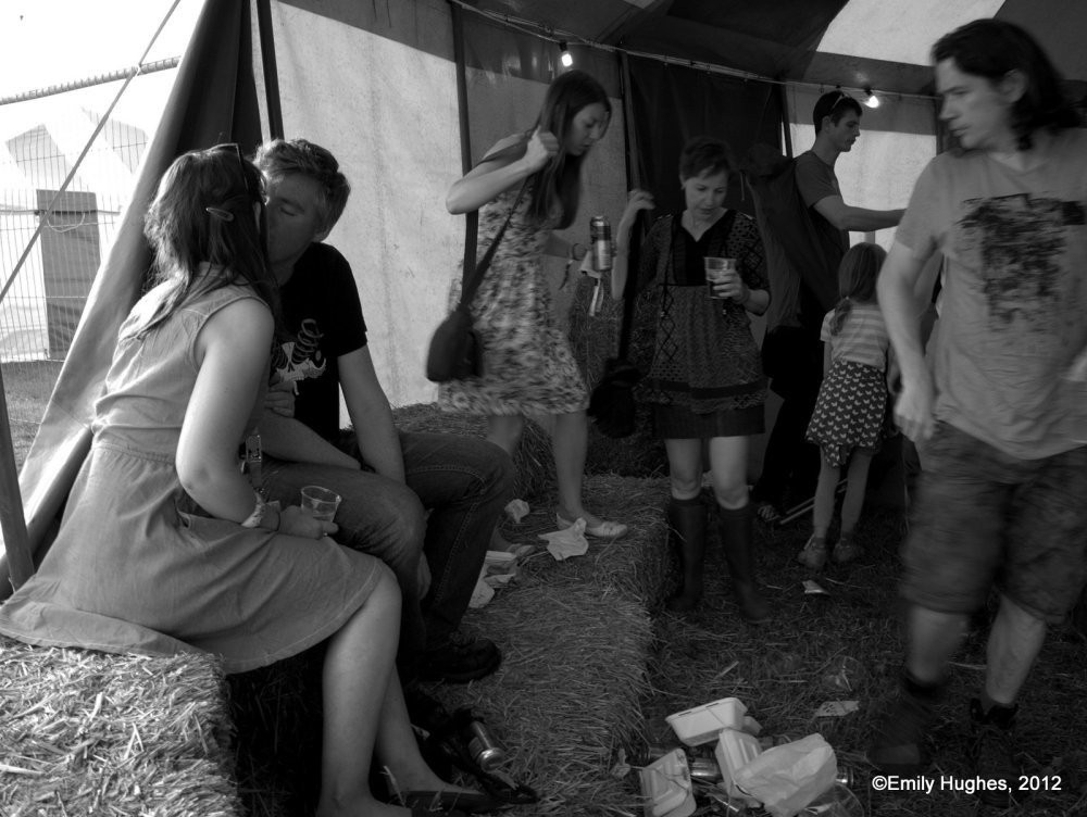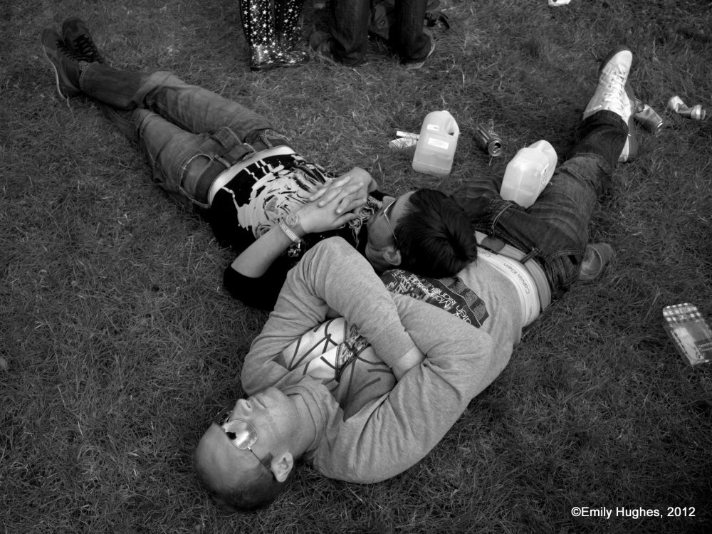 One of the things I enjoyed was plucking out scenes of couples from the crowds (sometimes intentionally and other times accidentally). I liked the way the twosomes  found their own secret spaces to just be quietly in their togetherness and share tranquil moments amongst the ensuing chaos and frenzy of the festival crowds. There is a sense of both reckless abandon and extreme privacy in a very public space (not least highlighted by my presence as intruder-photographer, and mostly fueled by lots of cider!). The images also tell their own little stories of friendship, love and community – truly summing up the spirit of the whole festival for me.