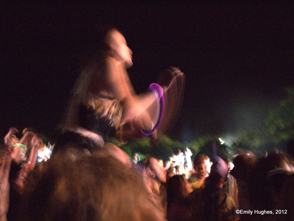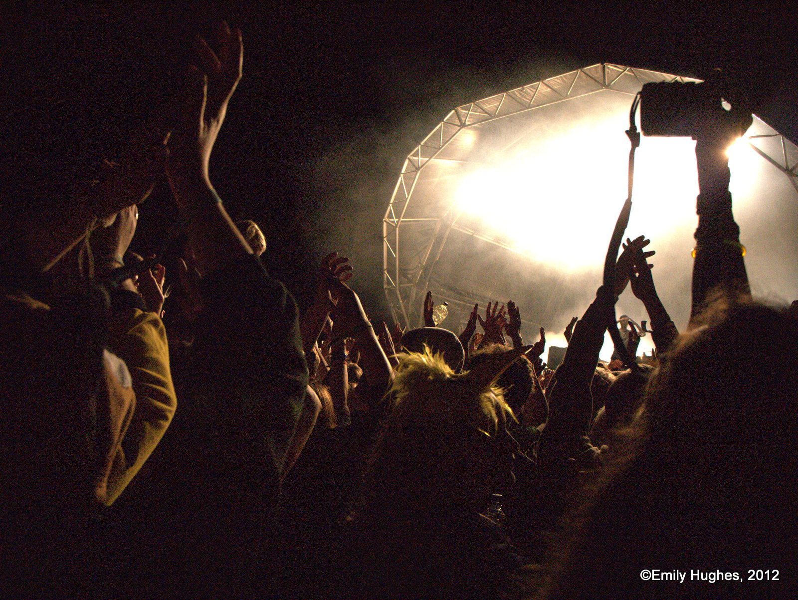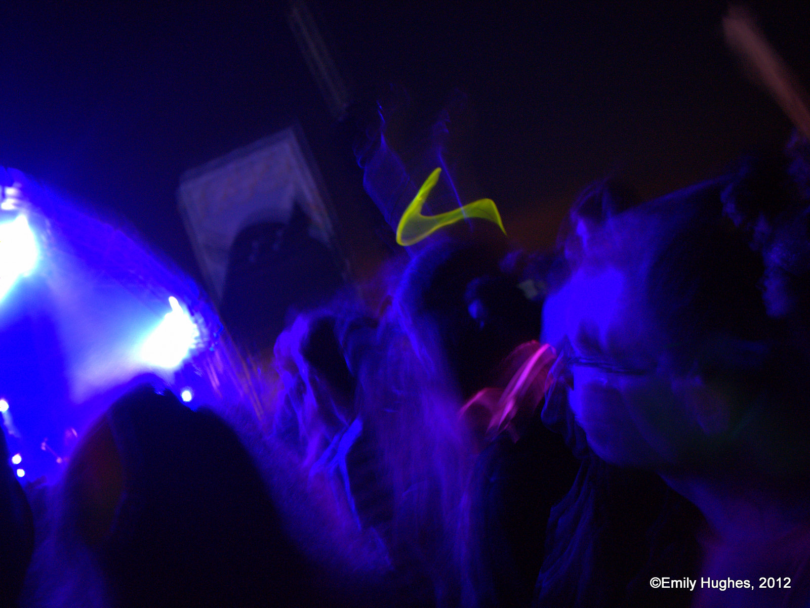 Technicolours light up the stage, and the excitement rises. The crowd gushes in and becomes a swirl of glow bands; a jostle of cameras, phones and flailing body parts. We scream and shout and sing and cheer, moving to the beat, surging in time with the swell of the crowd.