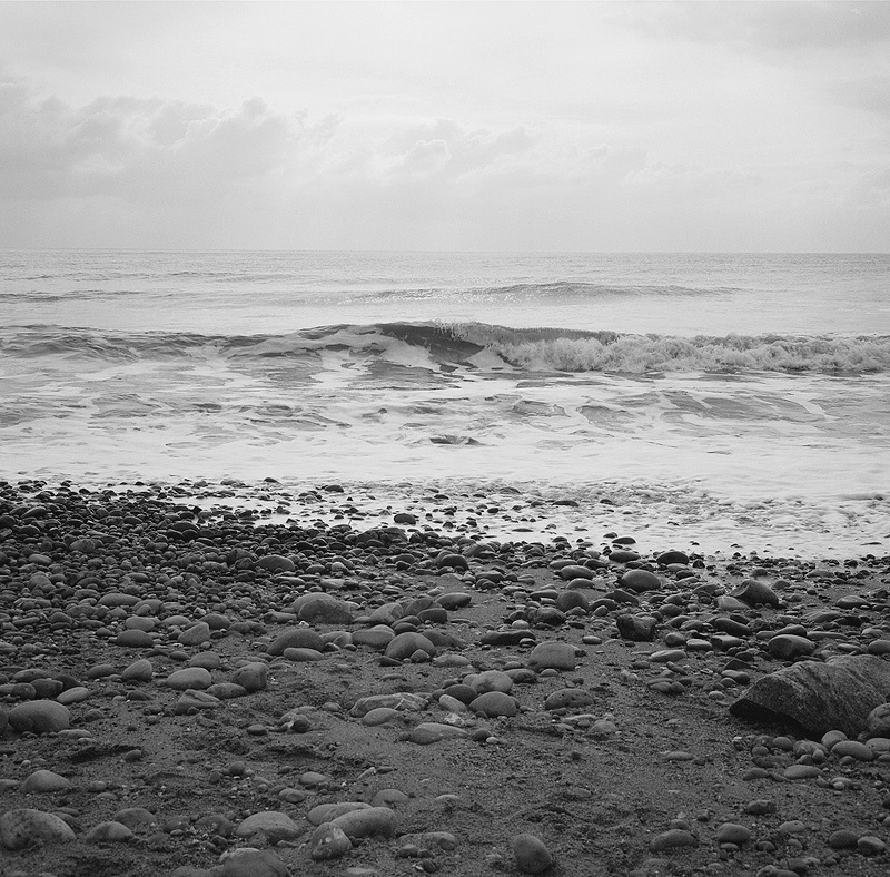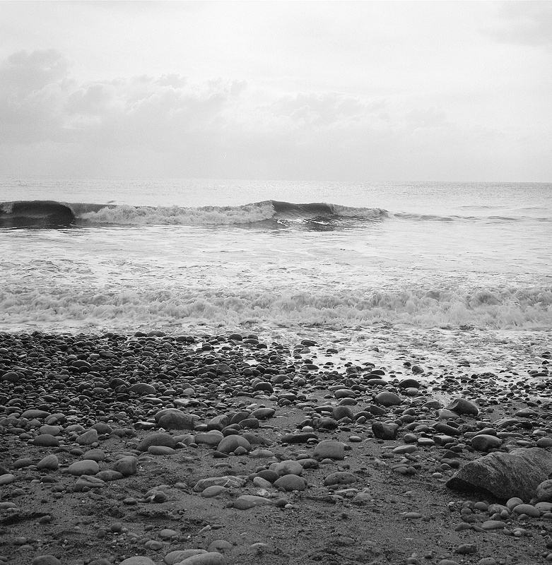 The sky drops right down to the sea, and shears a perfect horizon at the edge of the world where the air meets salt water. The sea exhales, lilting undulant murmurs which curl and crease up to a wrinkle and then smooth again in turn. Rise and fall. As regular and certain as the breath, as the expanding and contracting of the lungs.