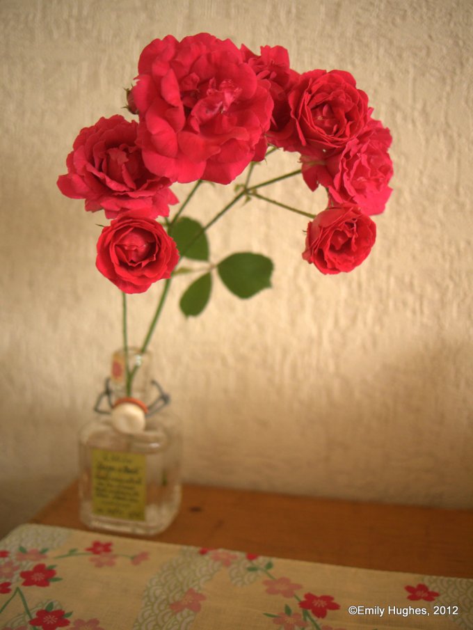 I’m not sure what kind of roses these are, but they are such a beautifully intense shade which I can’t quite describe; not quite pink, or red, or peach. Very appealing.